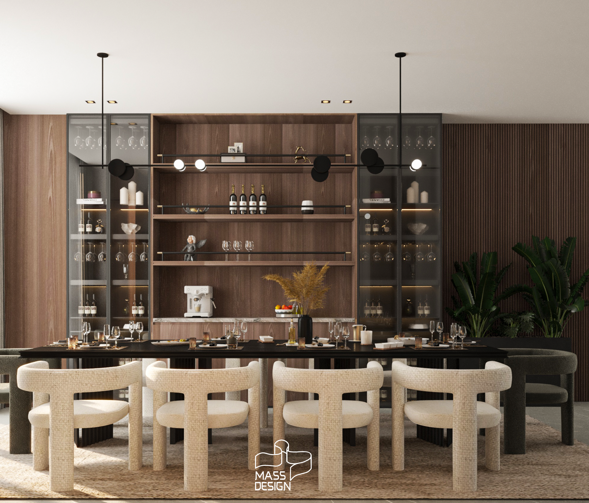 Designed and executed as a refined setting for hospitality, the concept blends natural tones, modern simplicity, and sophisticated details in finishes and lighting — creating a warm and complete experience for family and guests.